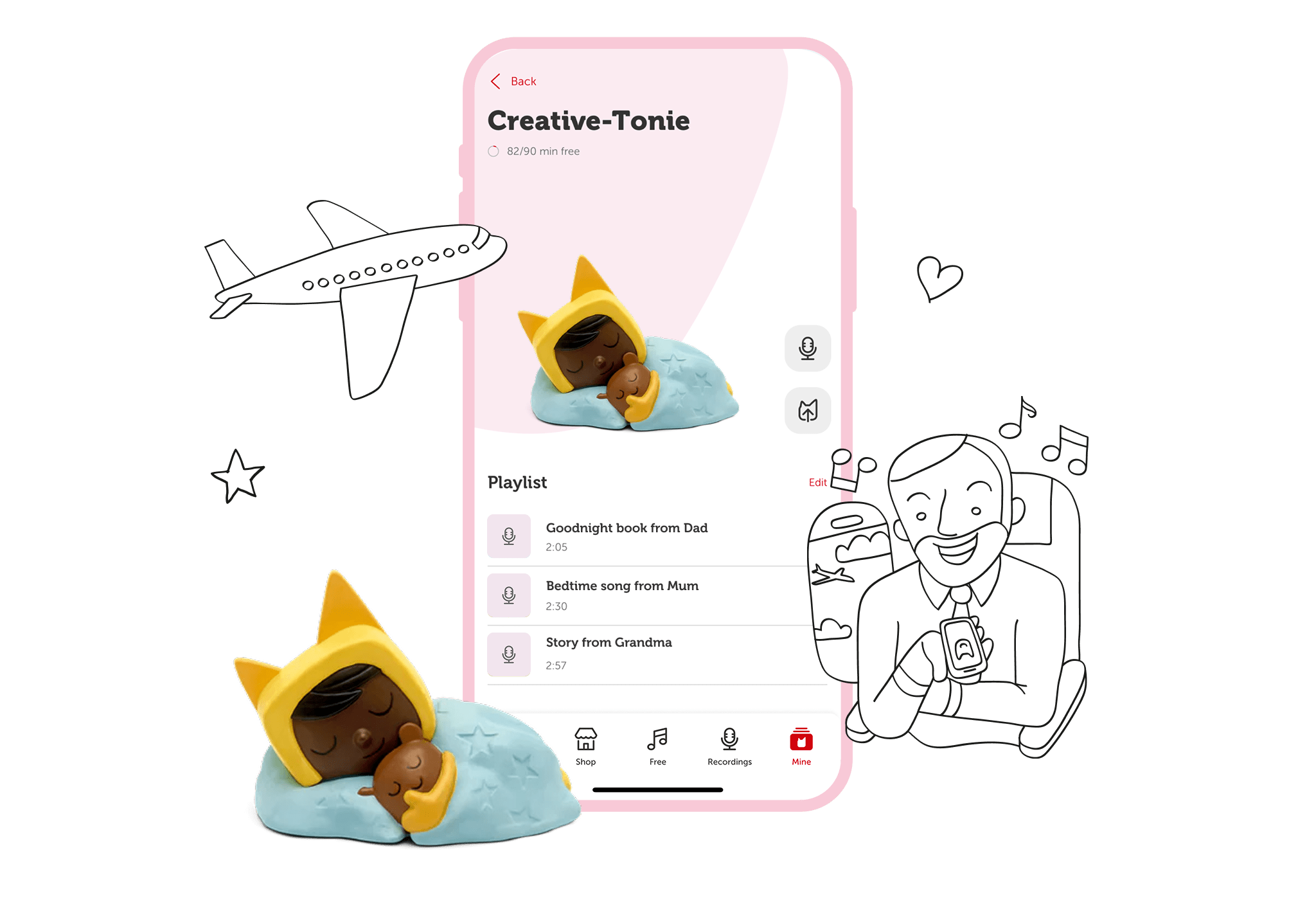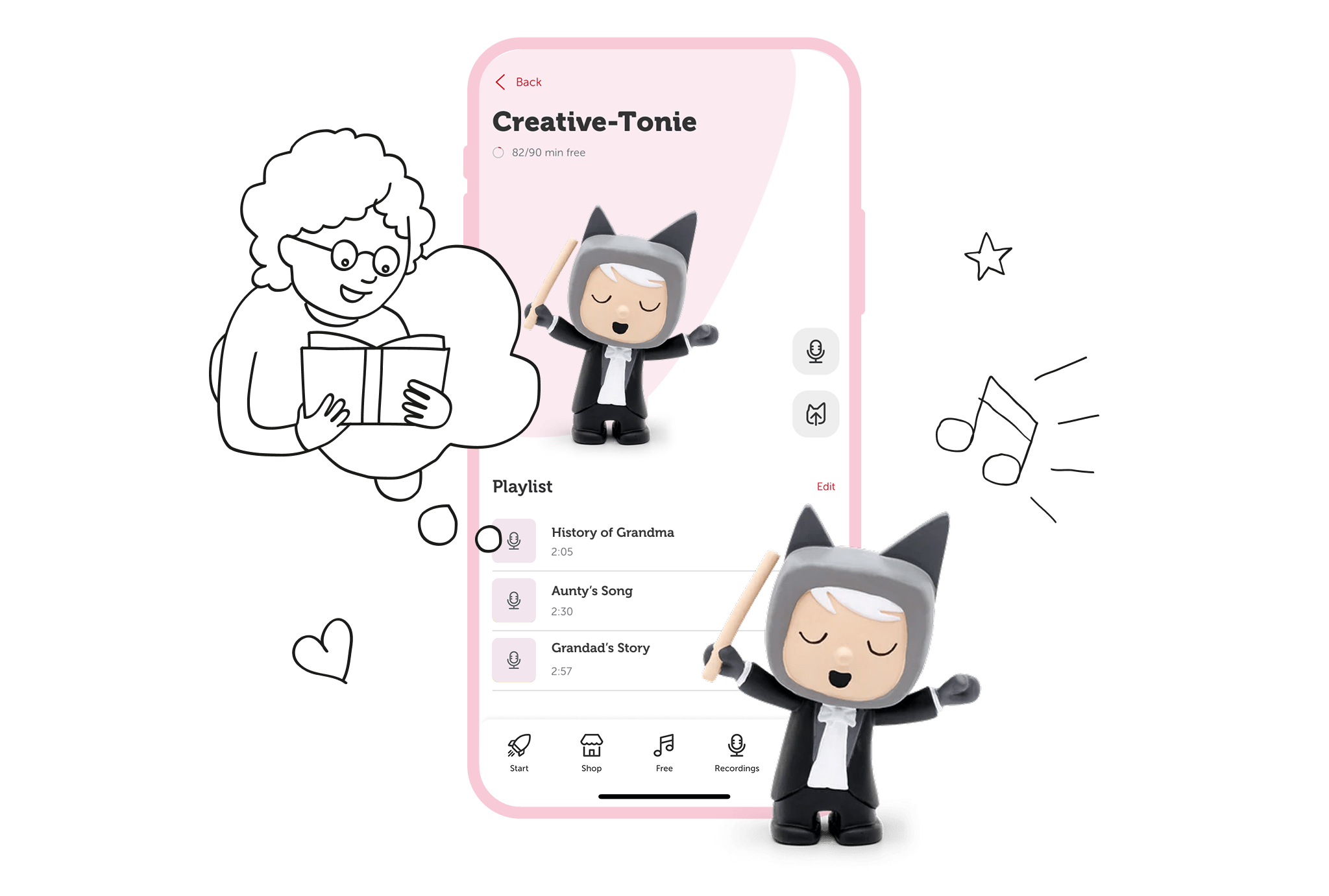 With Creative Tonies, you can record up to 90 minutes of custom content. Read a favourite book in your own voice, sing a beloved song, preserve cherished family memories, or send heartfelt messages to loved ones.