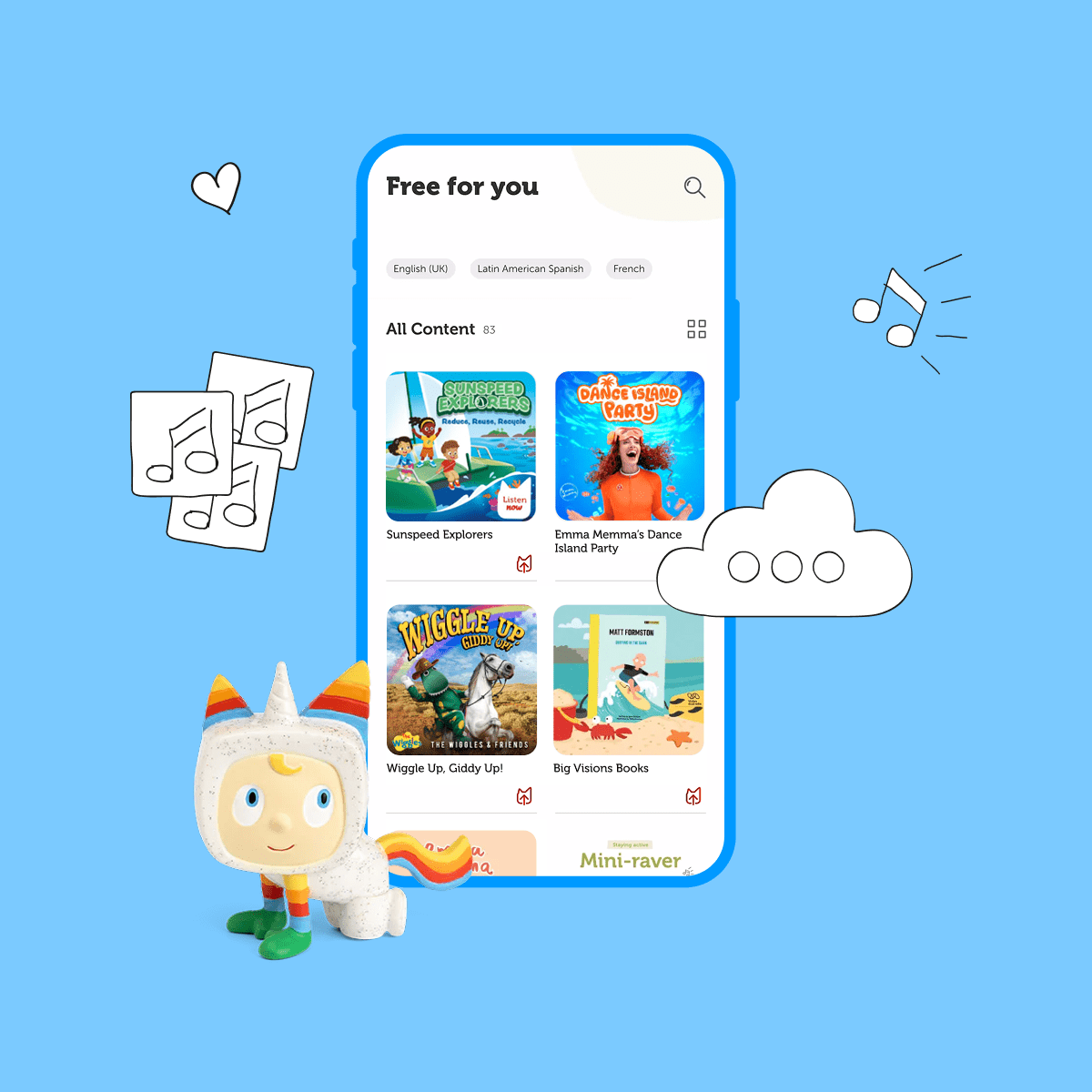 The tonies app offers a wealth of free content ready for download. Your listeners will enjoy revising and refreshing their Toniebox content to ensure it always reflects their latest curiosities and evolving interests.